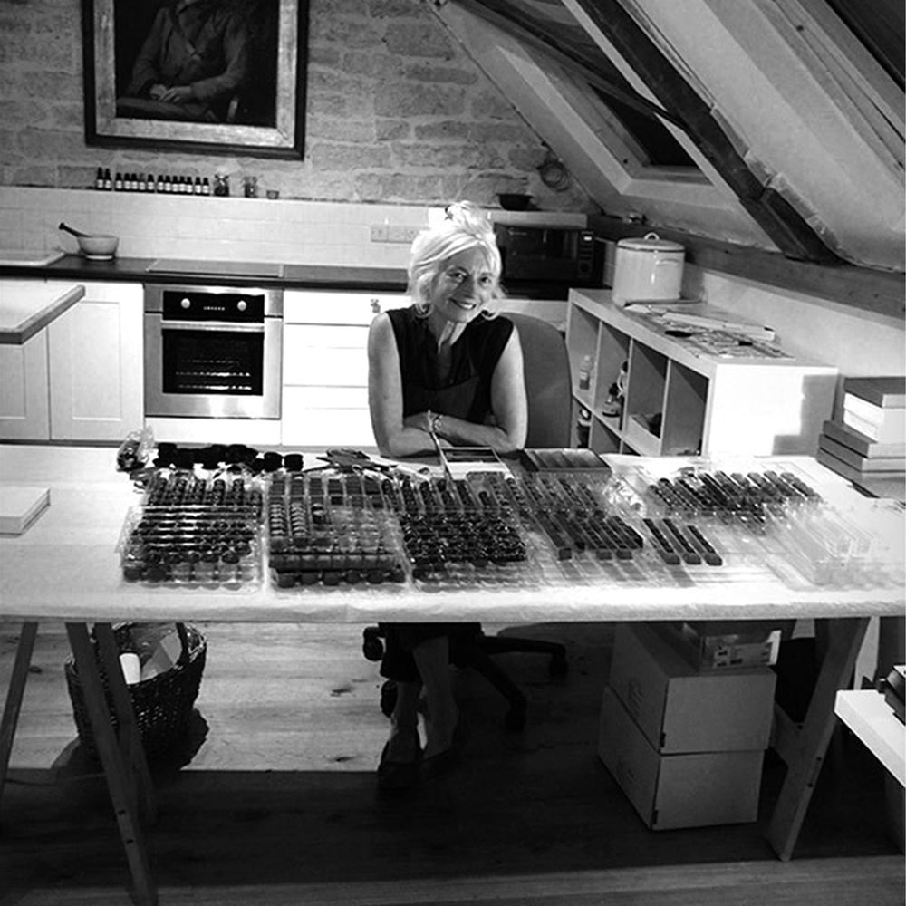 Inspired during a visit to stay with her family in the Hague, she attended a course at Meneer Chocola, and after completing her training with World Master chocolatier Ruth Hinks of Cocoa Black she found herself in a converted barn overlooking Glastonbury Tor at her home in Somerset.